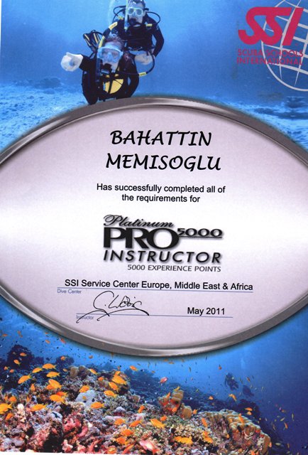 Scuba Schools International (SSI)’ın üst düzey performans gösteren Eğiticilerine takdim edilen Platinum Pro 5000 Eğitmen kategorisine giren ilk Türk Platinum Pro 5000 Eğitmen olarak Belgesini almaya hak kazandı .